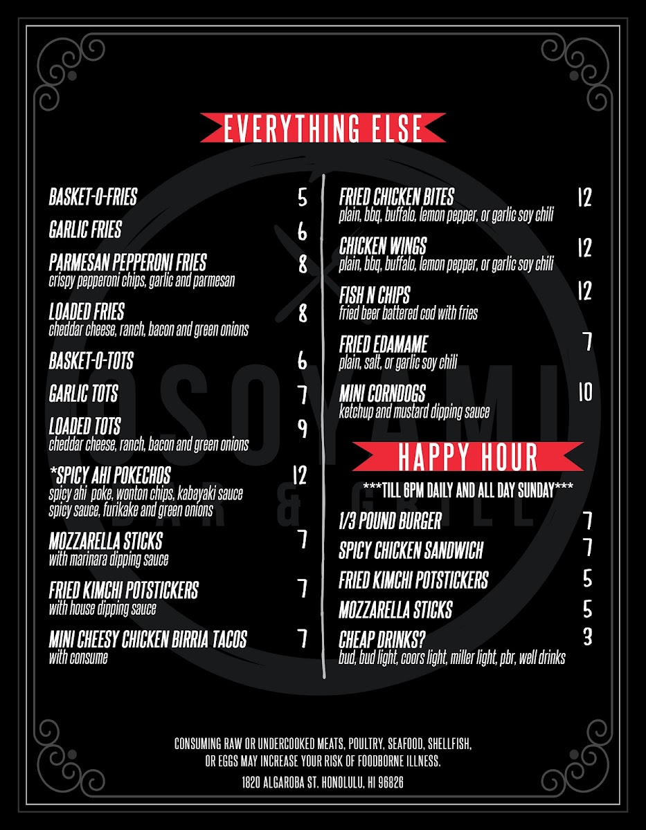 Welcome to Osoyami Bar and Grill, a hidden gem nestled in the vibrant heart of Honolulu, Hawaii. Located at 1820 Algaroba St, this welcoming establishment is not just a place to dine but an experience waiting to unfold. With a phone number you can easily reach at +1 808-200-0514, Osoyami invites you to indulge in a variety of delicious offerings that perfectly complement its lively atmosphere.