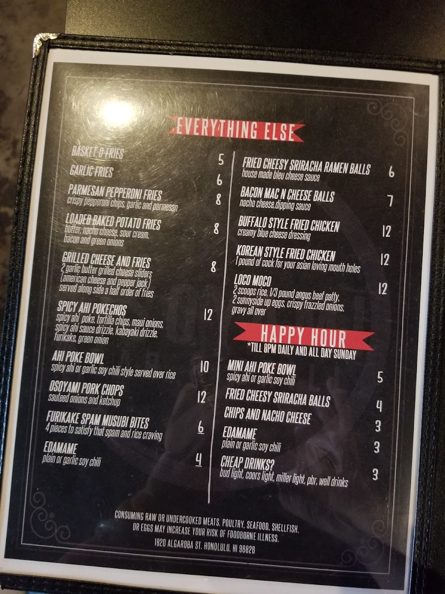 “ Best burgers I've ever eaten on the island! The video game arcade and serious dart setup is very nice! I normally go for the fighting game tournaments they host on Thursdays, some of the very best fighting game players come and play casuals before and after the tournaments. I'm not too familiar with the darts but know a few serious players that come to play there too. Perfect for a date for those looking. The bartenders, waiters, and owner Blane are some of the nicest laid back people you'll ever meet. Great service and great menu, I personally go for the burgers. ”